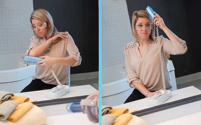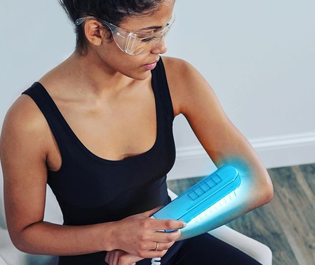 Cover areas that shouldn’t be treated with clothes or a white towel (Sunscreen can be used for some areas)